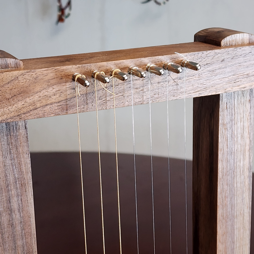 Extra Set of Steel Strings: Strings break from time to time and strings need to be replaced every year. Our extra set of strings are the exact size, length and number that matches the lyres that we build here at Evergreen Instruments.