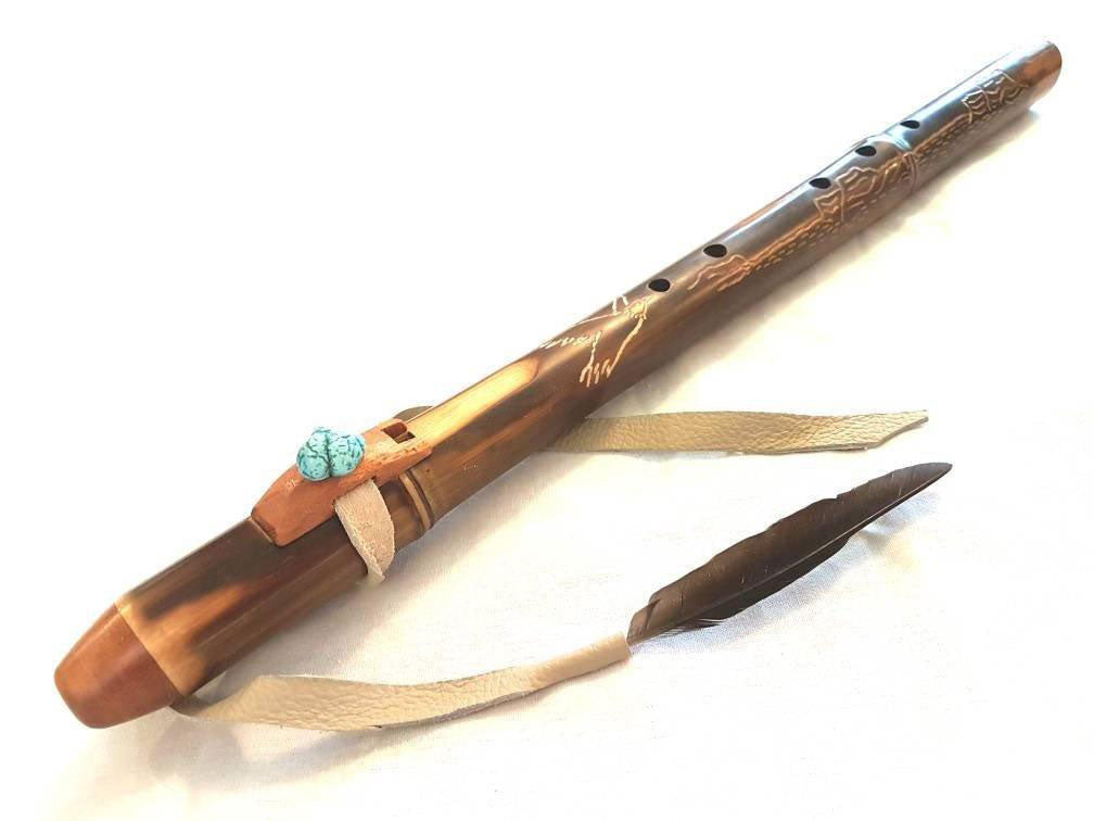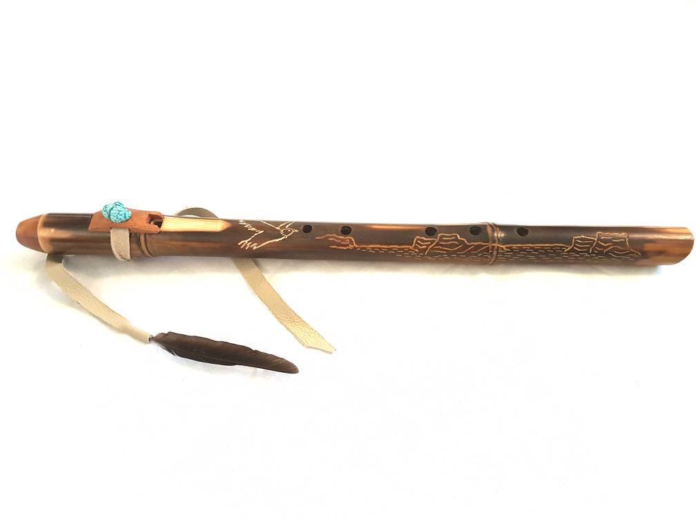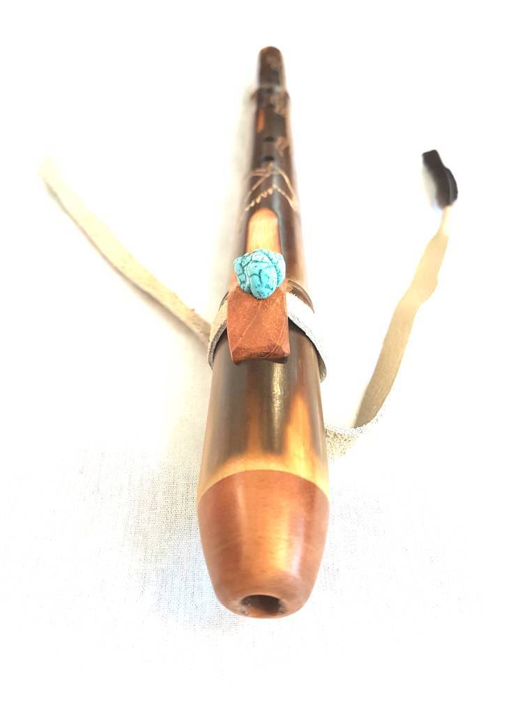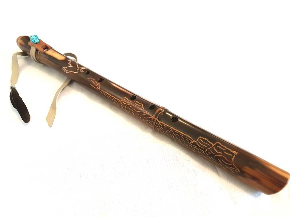 This flute is a Native American style Flute (NA Flute). I hand make this from my shop in North Carolina, from start to finish, just as I do all of my flutes and instruments. The Native American style flute is a double chambered flute which means it is easy to play, just blow! It is made of high quality, heat treated and sealed bamboo. It is tuned in the minor pentatonic scale. I make a nice, mahogany or walnut mouthpiece at the end to make it comfortable to blow.